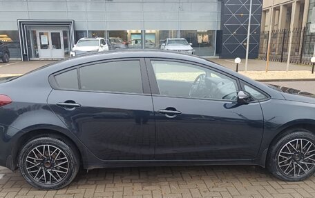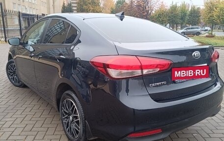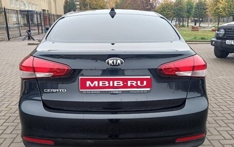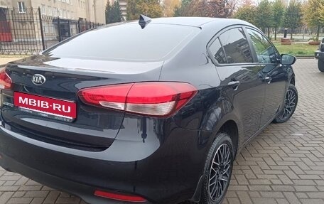 Автомобиль Kia Cerato черного цвета, 2017 года выпуска, с пробегом 131 000 километров и двумя владельцами в ПТС. Объем двигателя составляет 1,6 литра, мощность 130 лошадиных сил, тип двигателя бензиновый, коробка передач автом...